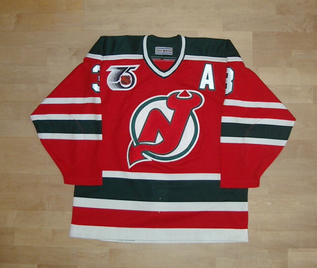 Authentic CCM Ultrafil Away, Size 48 PATCH: NHL 75th Anniversary + New Jersey Devils 10th Anniversary OTHERS: - |